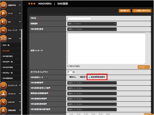 従来のSMS送信機能は発信元が携帯電話の場合のみ対応していましたが、携帯電話以外から発信した場合でも携帯番号を入力することで、ショートメッセージを送信する事が可能となりました。