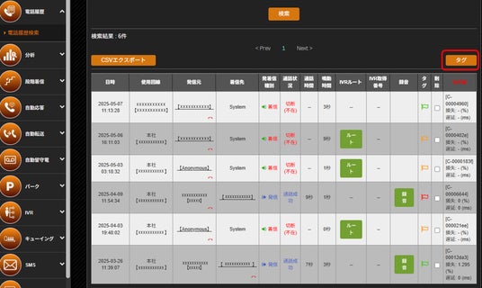 電話履歴に検索用タグが追加され、「クレーム」や「対応不要」などを設定できるようになりました。対応状況が可視化され、通話履歴確認時に一目で確認できて非常に便利です。