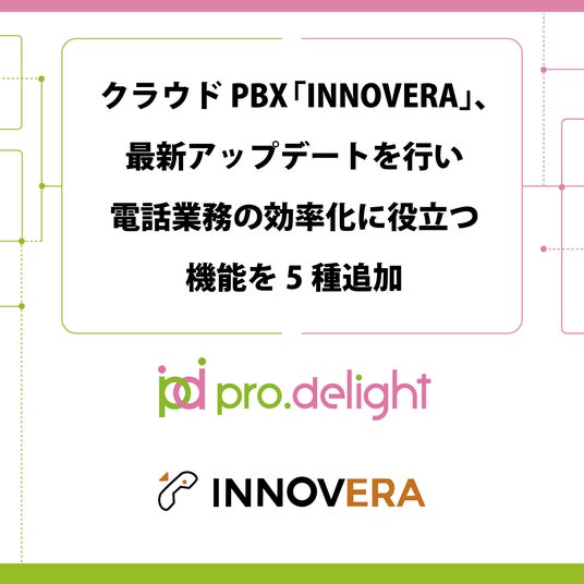 電話のDXを推進する株式会社プロディライト(大阪市中央区:代表取締役社長 小南 秀光、証券コード:5580、以下プロディライト)は2025年5月15日、クラウドPBX「INNOVERA 2.0」にてアップデートを行い、電話業務の効率化に役立つ機能を新たに5種追加したことをお知らせいたします。