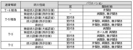 います。JIS規格の各遮音等級仕様を取り揃えている上に、JIS規格の最高等級(T-4)を上回る仕様