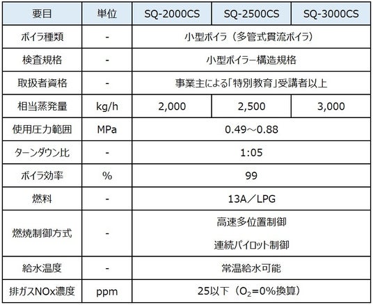 産業用ボイラメーカーの三浦工業株式会社(東京本社:東京都港区、代表取締役:米田剛)は、ガス焚き小型貫流蒸気ボイラSQ-AS型をモデルチェンジし、「ガス焚き小型貫流蒸気ボイラSQ-CS型」(相当蒸発量:2,000kg/h、2,500kg/h、3,000kg/h)として2025年3月より順次発売します。