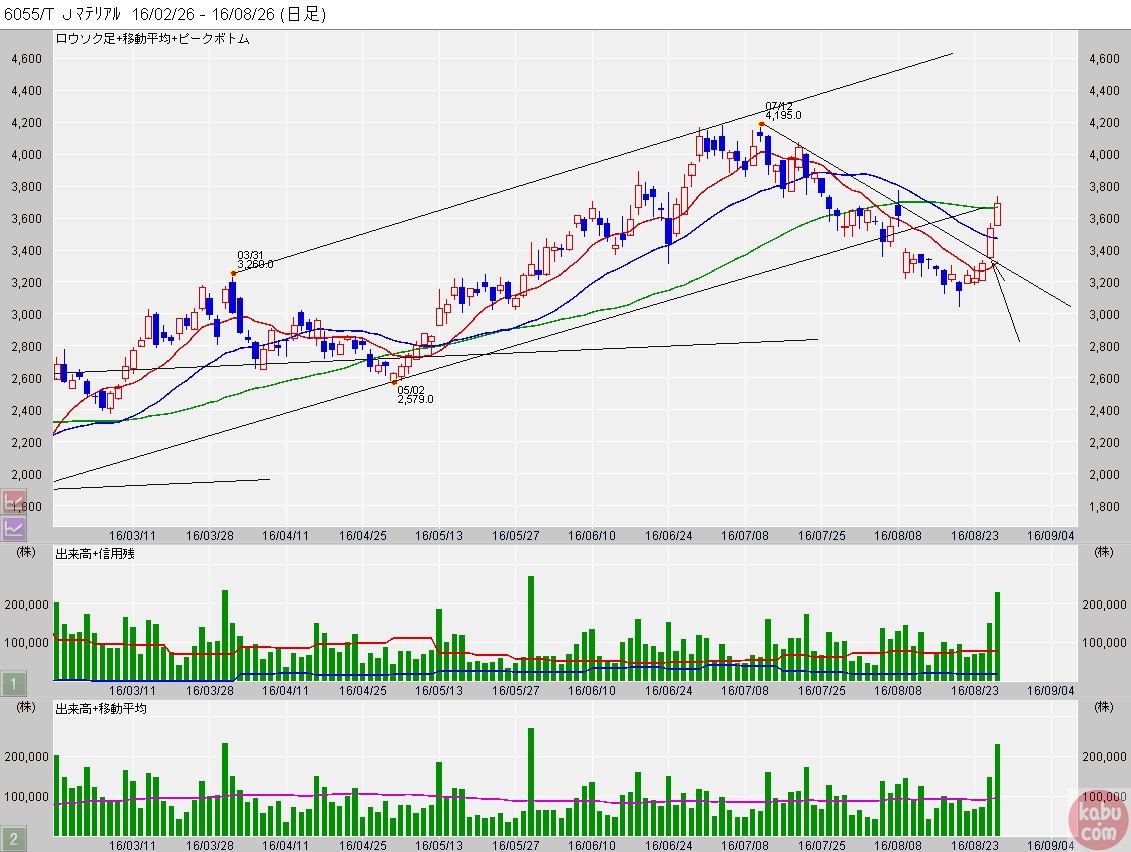 ジャパンマテリアルの株を取引したことがありますか?みんかぶアセットプランナーに取引口座を連携すると売買履歴をチャート上にプロットし、自分の取引を視覚的に確認することができます。