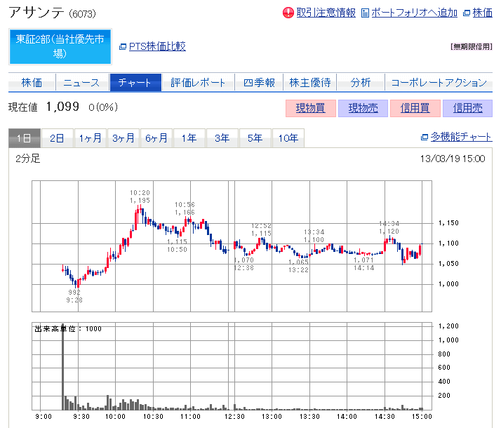 ①3月19日上場 東証2部 証券コード:6073 アサンテ 上場来安値 766円 7月12日現在 914円 公募価格 930円 → 初値 1034円 ②3月19日上場 東証2部 証券コード:7215 ファルテック 上場来安値 3540円 7月12日現在 4070円 公募価格 3940円 → 初値 4150円 ③3月22日上場 東証1部 証券コード:3673 ブロードリーフ 上場来安値 1180円 ... ...続きを読む