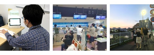 (左から)血管年齢等の健康測定会、社内スポーツイベント、終業後のウォーキングイベント