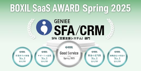 株式会社ジーニー(本社:東京都新宿区、代表取締役社長:工藤 智昭、以下ジーニー)が開発・提供する営業管理ツール「GENIEE SFA/CRM」は、スマートキャンプ株式会社(以下スマートキャンプ)が今もっとも評価されているSaaSを表彰する「BOXIL SaaS AWARD 2025」のBOXILセクション SFA(営業支援システム)部門で1位に選出されました。