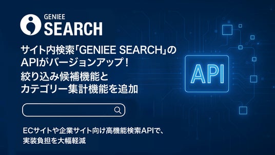 株式会社ジーニー(本社:東京都新宿区、代表取締役社長:工藤 智昭、以下ジーニー)は、ECサイトや企業サイト向けに提供する高機能検索サービス「GENIEE SEARCH」のAPIを機能拡充し、絞り込み候補機能とカテゴリー集計機能を追加したことをお知らせします。