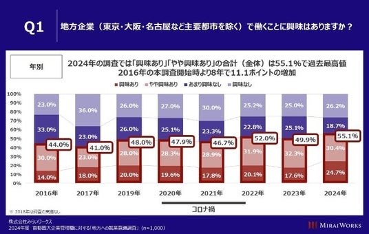 ~地方企業で働くことに興味がある人は55.1%で過去最高値、8年間で11.1ポイントの増加~