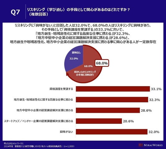 また、地方創生や地域活性化、地方中小企業の経営課題解決支援に携わることが、リスキリング(学び直し)の手段として興味ある人が一定数いることから、リスキリングと地方副業を掛け合わせた支援をすることが、地方副業の実践者を増やす有効な手段だと考えています。