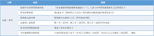 主な出産・育児支援制度