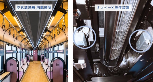 JR東日本テクノロジーとパナソニックが共同開発したナノイーX発生装置を嵐電(京福電気鉄道嵐山線)の新型車両「KYOTRAM」に搭載