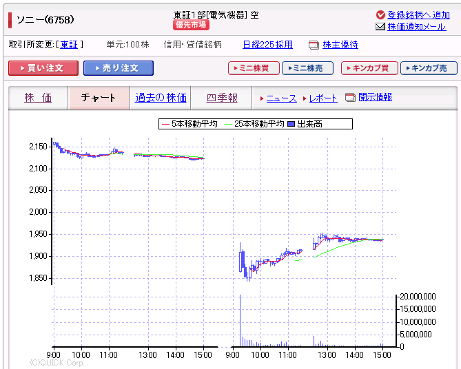 【材料】ソニーは一時、約8%の急落、「海外長期資金の売り」との観測も