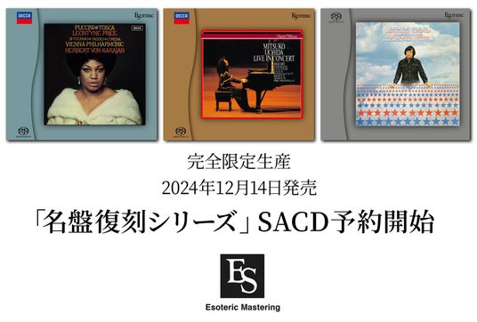 ESOTERIC(エソテリック)は、「ESOTERIC名盤復刻シリーズ」スーパーオーディオCDハイブリッド盤3作品を発売開始いたします。社内に構築した「エソテリック・マスタリング・センター」にてリマスタリングを行いました。定評の丁寧なマスタリング作業に、独自のデジタル技術を駆使して開発した「Esoteric Mastering」の音楽表現力が加わり、さらなる感動をお届け出来るスーパーオーディオCDに仕上がっています。