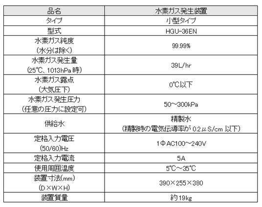■ 水素ガス発生装置「HGU-36EN」の主な仕様