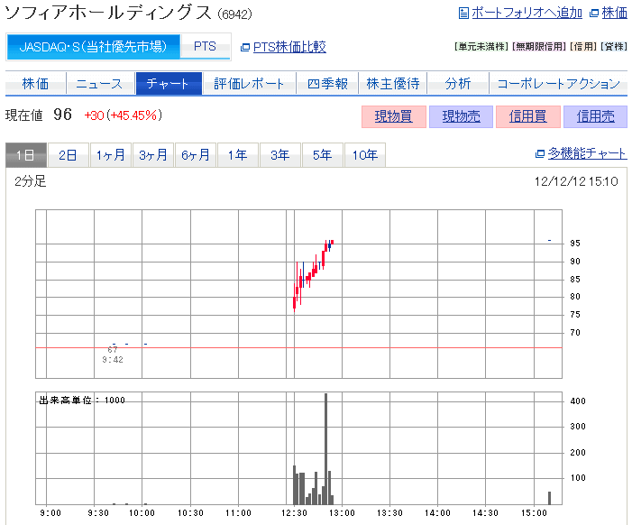 56円高ですか。そりゃすごい!まだ上を目指してますね。面白いです。今日も出かけていたので、ノートレですが、後場、ソフィアホールディングスが、急騰している場面に出くわしました。84円くらいで、もじもじしていましたが買えませんでした。結... ...続きを読む -