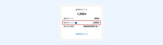 「限定ポイント」は限定ポイントが付与されるキャンペーンなどで貯めることができます。