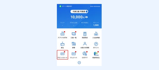 2.「デビットカード」のアイコンをタップ
