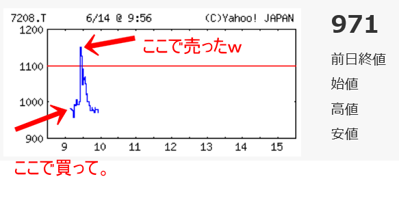 カネミツでスーパートレードw添付図を見てください。いや~、昨日、カネミツを1100円のストップ高で買い持ち越してたんですね。そしたら、朝、気配が激しく上下して、結局、売り気配で始まったんです。始値1000円だったのです。寄りで、同数... ...続きを読む -