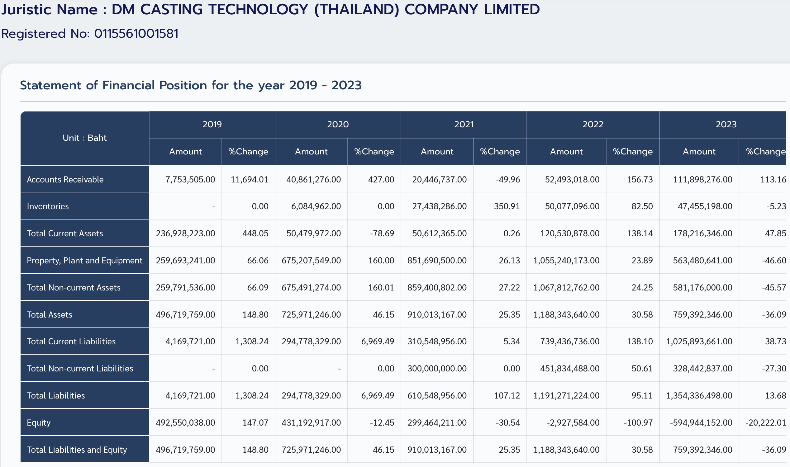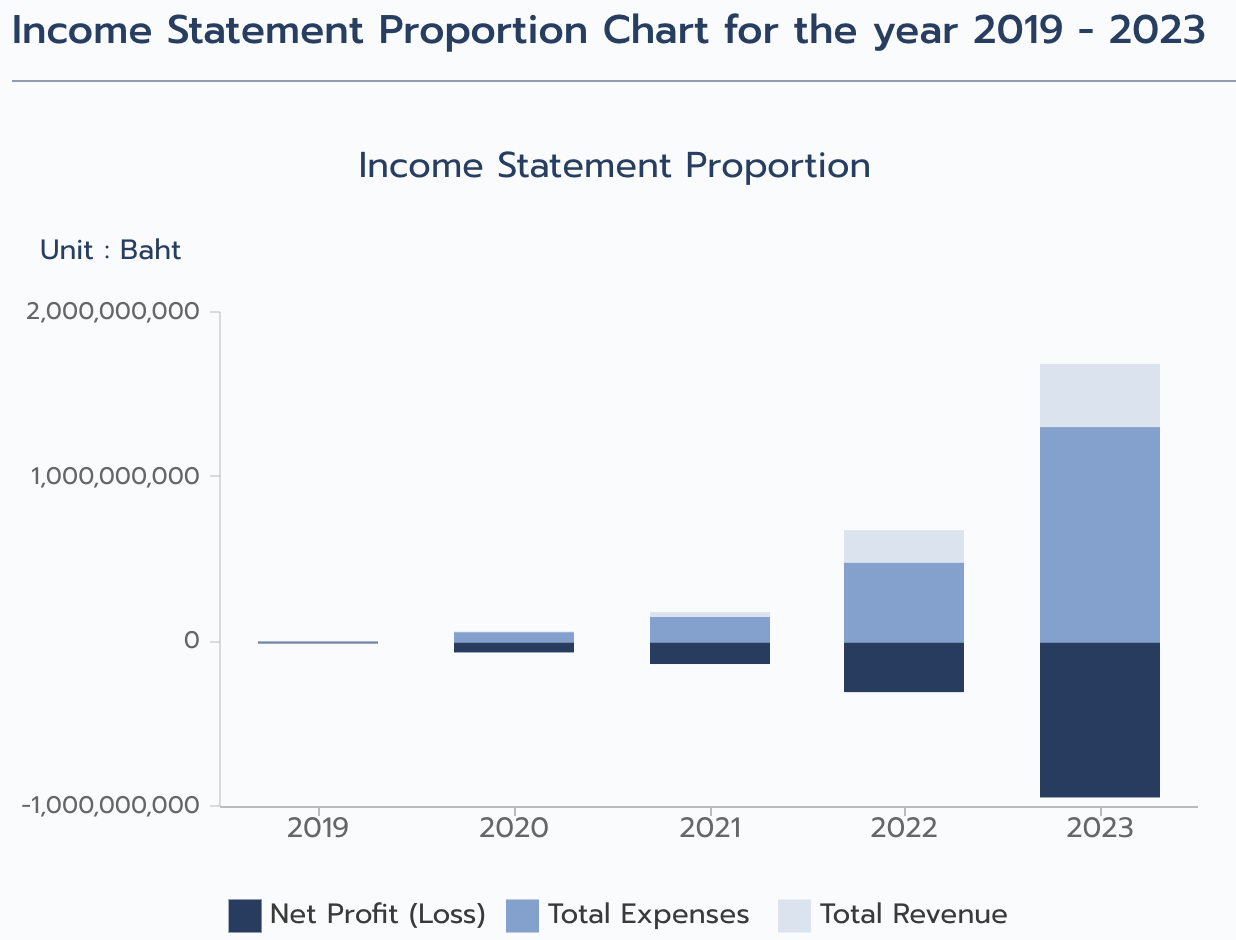 Total Liability1,354百万バーツなのでざっと50億以上の負債。資本金は855百万バーツあったのに食いつぶしてしまいEquityが▲595百万バーツ。売上に応じて赤字が増加する会社で、2023年の情報では売上351百万バーツで純損益▲942百万バーツ。