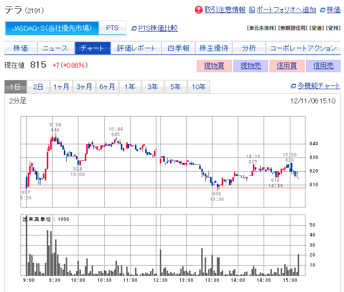 システムソフト(7527)、先日トレードしましたが、ここ2日間の日中足および日足から考えて、まだ上値があると考えています。ということで、本日123円で12,000株買いました。 アイフラッグ(2759)、150円台でもみ合い中。156円で5,000株買いました。 -