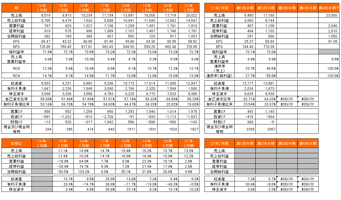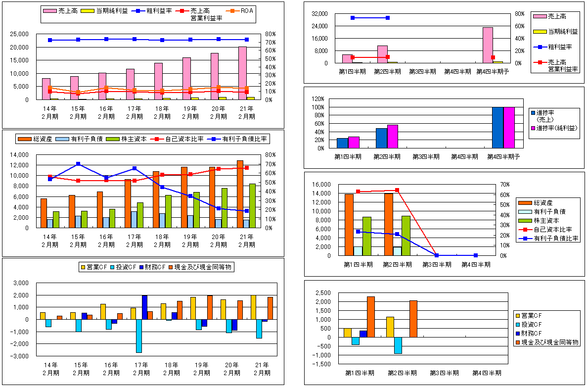 過去の経営成績を見ると、粗利益率は過去8年間、約71~73%台で維持している。売上高営業利益率は若干の浮き沈みがあるが、おおむね9%台で安定している。8年間連続で増収。