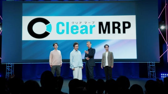 新TV-CMでは、「クリアマープ」を紹介するプレゼンターという役どころを演じることとなった渡部さん。撮影当日、渡部さんが、舞台のステージに登壇すると、自らの動線や歩くスピード、目線、スピーチに合わせたジェスチャー、ポージング、プレゼン中のテンションなど、細部に至るまで入念に監督と話し合い、本TV-CMの世界観にふさわしいプレゼンター像を丁寧に作り上げていました。本番が始まってからも、「これぐらいのニュアンスでどうでしょうか?」「ここは動きを止めた方がいいですか?」と微調整を繰り返し、ご自身で気になるところがあった時は「もう一回お願いします」と積極的にリクエスト。「ビックニュース!!」とアピールするシーンでは、クールな印象の渡部さんですが、スタジオ中に響き渡る大声を張り上げて現場を沸かせるなど、堂々たる存在感と圧巻のプレゼンテーションで、スタジオ中が引きつけられていました。