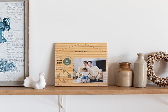 ウッドワンオリジナルの「再造林貢献書」の素材は内装建材と同じニュージーパイン(R)で制作し、表面のデザインは特殊塗装仕上げにしています。適切に管理された森林の木材を活用することで次の再造林へつながり、環境へ貢献した証は、インテリアとしてご利用いただけます。