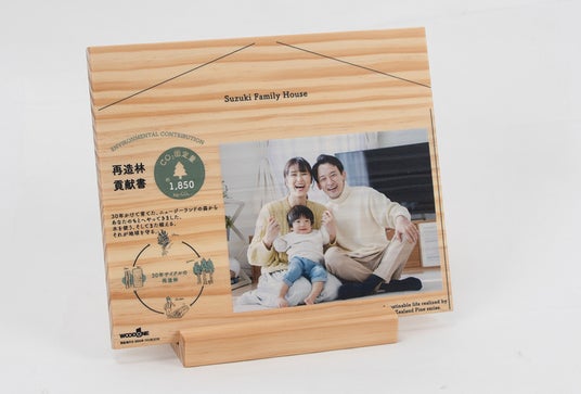 このたび、マイホームの環境貢献価値をお施主様や施工会社様にご共感いただける新たなサービスとして、商品と同じ素材(木材)にCO2固定量と記念写真の表示を施した弊社オリジナルな「再造林貢献書」の提供を2024年11月20日(水)より開始することをお知らせします。