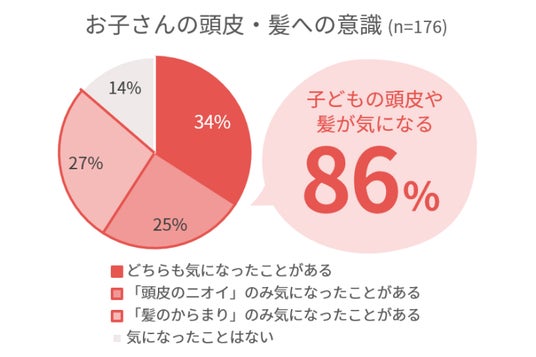 2才~5才児の親の86%が「子どもの頭皮のニオイや髪のからまりが気になる」と回答
