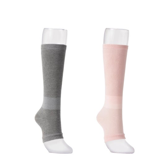 ふくらはぎを持ち上げる独自の段階着圧設計を採用することにより、足首部分はゆったりとして脱ぎ履きしやすく、ふくらはぎ部分は下からググッと持ち上げ脚をスッキリ引き締めます。また、敏感な肌にやさしく肌触りの良いコットン混素材を使用し、足首部分には吸湿発熱素材を使用し温めます。日常の生活にも馴染むグレーとピンクの2色展開で、妊娠初期から産後まで長く履き続けられます。