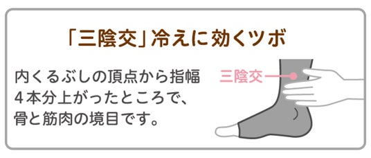 足首周りを冷やさないよう、「三陰交」がある足首部分には吸湿発熱素材を使用し温めます。