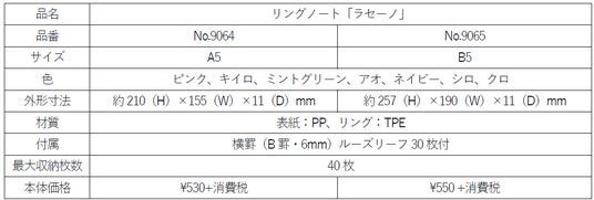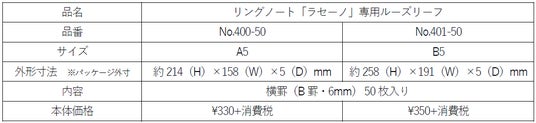 リングノート「ラセーノ」専用ルーズリーフ製品仕様