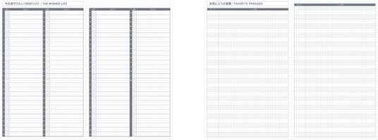 生き方を見つめ直せる「今年度やりたい100のリスト」や心に刻まれた大切な言葉を書き留めておける「お気に入りの言葉」など、ユニークなライフログ情報も記録できます。