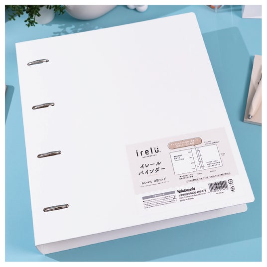 - 「ireluバインダー」は大容量の収納が可能な構造で、既製のA4サイズやA4変形リフィルにも対応