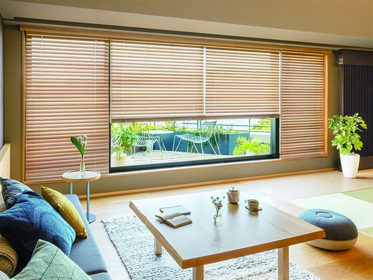「フォレティアエグゼ」「フォレティア」は、細やかな光のコントロールができる機能に加え、天然木を使用することで心身ともに心地よい空間を演出できる木製ブラインドです。なかでも、「フォレティアエグゼ」は、コード穴がない一枚板のスラットで、遮蔽性やメンテナンス性に優れています。