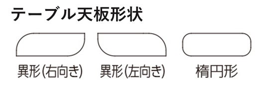 テーブル天板:人工大理石、突板、リノリウム、グレインストーン(石目)メラミン、クオリアウッド(木目)メラミン、単色メラミン(各3色)