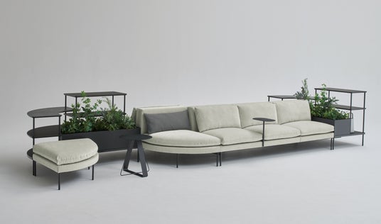 ゆったりとリラックスできる柔らかい座り心地のソファのほか、ライブラリーとして機能するシェルフやプランターボックスを品ぞろえしています。組み合わせて生まれる個性的なレイアウトが自然と人を集め、出会いと会話のきっかけを生み出す仕掛けとなります。