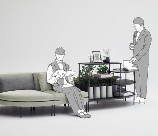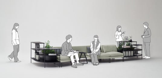 シェルフや植栽を組み込むプランターボックスなどを品ぞろえし、ソファと組み合わせることで、関係性構築のきっかけとなる新たな交流を生み出す仕掛けとなります。