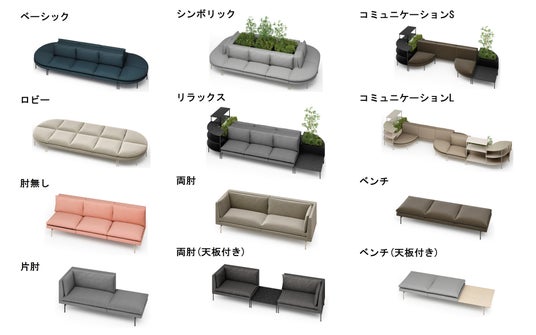 両面ソファ:ベーシック、ロビー、シンボリック、リラックス、コミュニケーションS、コミュニケーションL