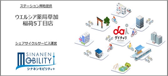 エネルギー・住まい・暮らしの総合サービス事業を展開するシナネンホールディングス株式会社(本社:東京都品川区、代表取締役社長CEO:中込 太郎)の子会社で、移動を楽しく、快適にするシェアサイクル「ダイチャリ」を運営するシナネンモビリティPLUS株式会社(本社:東京都品川区、代表取締役社長:菅原 健)は、全国に調剤併設型ドラッグストアを展開するウエルシア薬局株式会社(以下、ウエルシア薬局)の埼玉県内の店舗にシェアサイクル「ダイチャリ」を設置いたします。その第一弾として、11月19日(火)より、草加稲荷5丁目店に設置いたしました。
