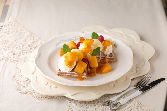 ◇たっぷり果実のマンゴーワッフルお店で焼き上げるサクサクワッフルに、芳醇なマンゴーの果肉とピューレを贅沢に乗せました。バニラアイスとホイップクリームが織りなす濃厚でクリーミーな味わいは、マンゴー好きにはたまらない一品です。オレンジが香る特製マンゴーソースが、濃厚な甘さの中に爽やかなアクセントを加え、マンゴーの美味しさを一層引き立てます。季節のマンゴーを存分にお楽しみください。