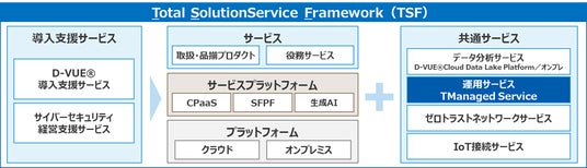 なおTManaged Serviceは、当社サービス体系(Total SolutionService Framework)における運用サービスとして位置付けています。運用を通して抽出された課題をもとに、お客様に有益なサービス提案をTSFに沿って行うことで、お客様のさらなるDX推進に寄与します。