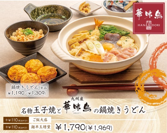 華味鳥を使用した鍋焼きうどんに名物玉子焼のセットを期間限定発売&その場でお食事券が30名様に当たるXキャンペーン実施!