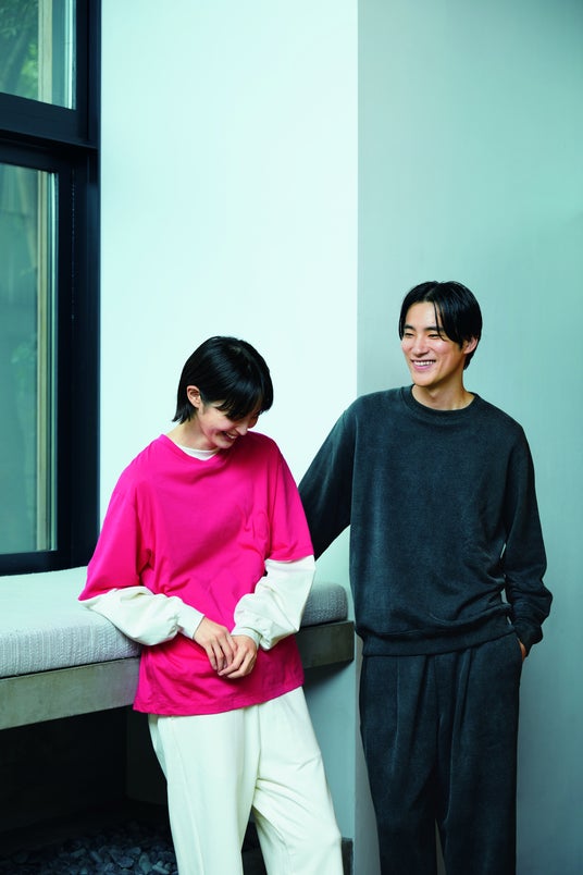 左:スウェットトップス 26,400円、 パンツ 28,600円、Tシャツ 9,680円