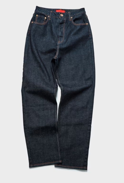 お客様から回収したデニムの一部を、新たに生まれ変わらせたデニム再生プロジェクト第4弾。ウエスト周りをカーブさせた絶妙なフィット感と、ハイライズの長め丈が今年らしいモデル。