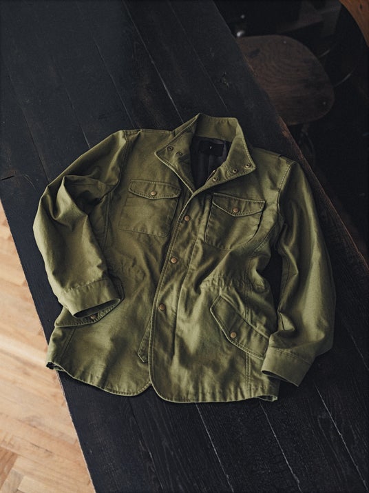 廃棄される茶葉を再利用し、たんぱく質で植物の色素を定着させる「ボタニカルダイ」で製品染めした別注アイテム。ブランド初期に生産していたジャケットの型紙をリデザインし、ミリタリーウェアの経年変化をボタニカルダイの後染めで表現することで、「大人のミリタリーウェア」を開発。細身のシルエットにアレンジしたM-65ジャケットとシンプルで活用度の高いキャップを、グリーンとベージュの2色に染め上げました。