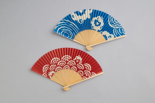 職人が繊細な手仕事で仕立てた扇子には、水にまつわる日本の紋様の中にミャクミャクが。
