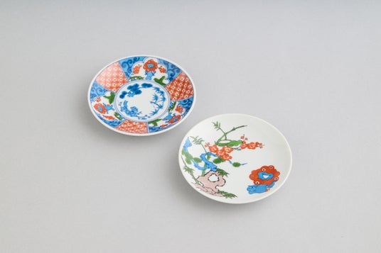 有田焼の伝統的な様式をモチーフにミャクミャクをしのばせた絵柄が特徴の豆皿。