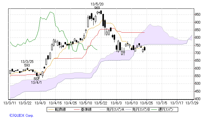 ココのこところ、上値は切り下げながら、下値は分かり易い700円付近で