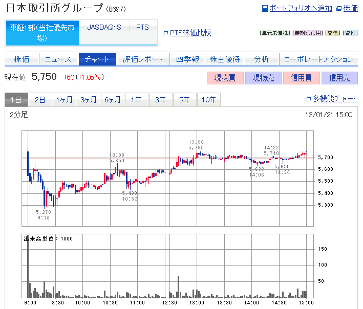 日本取引所グループ 信用買い +20,000円 【感想】空売りの利確一巡後、一気に買いに入りました