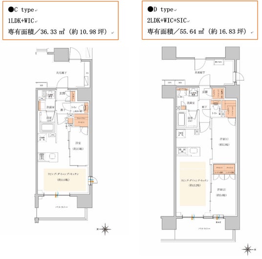 凡例:WIC=ウォークインクロゼット SIC=シューズインクロゼット